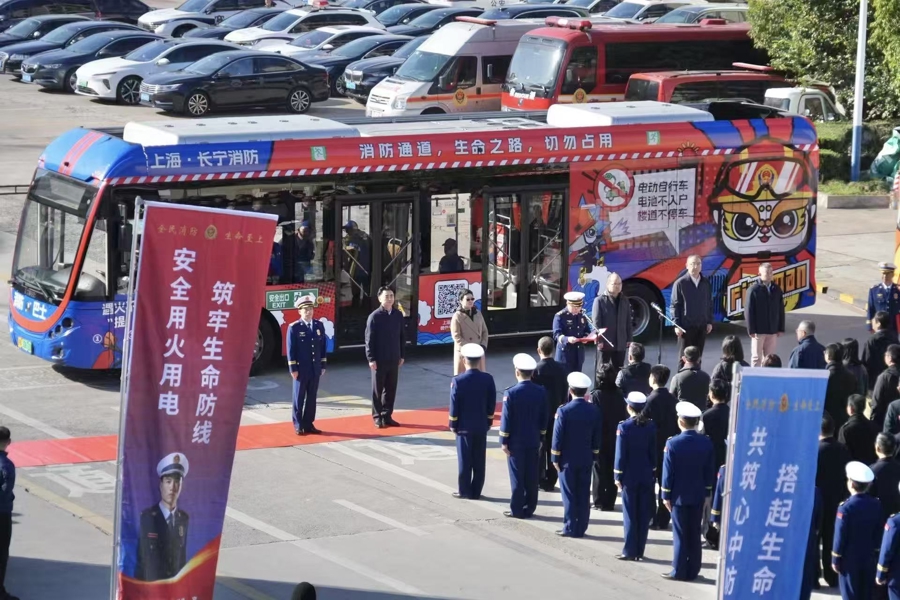 11月18日上午,上海市长宁区消防宣传月主题活动暨消防巴士发车仪式在双流路消防救援站举行。长宁区消防救援局联合上海巴士第三公共交通有限公司打造的消防主题巴士正式亮相,以“消防+交通”创新宣传形式,让消防平安文化随车轮滚动,走遍城市的大街小巷。